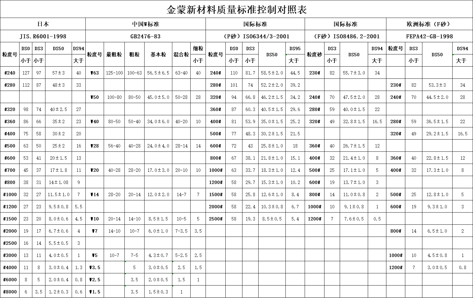 產(chǎn)品質(zhì)量嚴(yán)格按照 日本工業(yè)標(biāo)準(zhǔn)(JIS)、歐洲標(biāo)準(zhǔn)(FEPA)、中國(guó)國(guó)標(biāo) 或客戶(hù)特殊要求組織生產(chǎn)