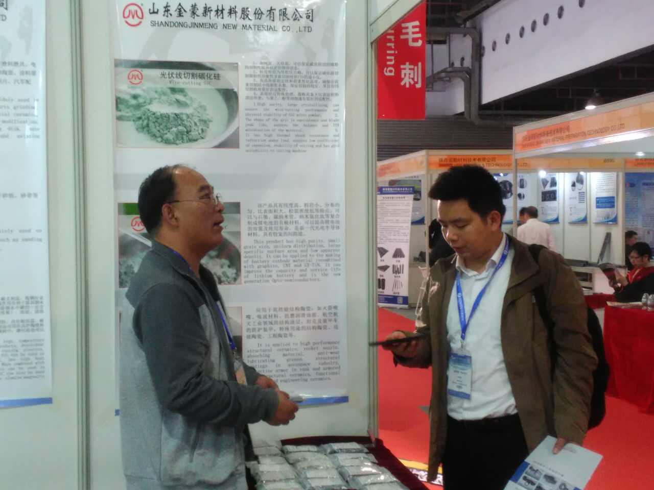 山東金蒙新材料有限公司參加了于4月26日正式開(kāi)始的上海先進(jìn)陶瓷展。此次展會(huì ),金蒙新材料準備了很多型號的碳化硅微粉樣品。