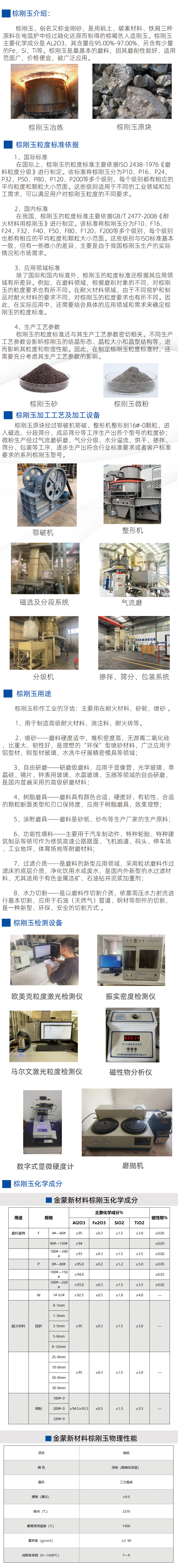 棕剛玉,俗名又稱(chēng)金剛砂,是用礬土、碳素材料、鐵屑三種原料在電弧爐中經(jīng)過(guò)融化還原而制得的棕褐色人造剛玉。棕剛玉主要化學(xué)成分是 AL2O3,其含量在95.00%-97.00%,另含有少量的Fe,Si,Ti等。棕剛玉是最基本的磨料,因其磨削性能好,適用范圍廣,價(jià)格便宜,被廣泛應用。